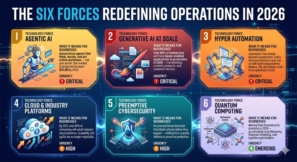 Every year brings new technology headlines. What sets 2026 apart is the convergence. AI, cloud computing, agentic automation, and edge computing are no longer developing in parallel — they are merging into a single operational layer that reshapes how businesses function at every level.
